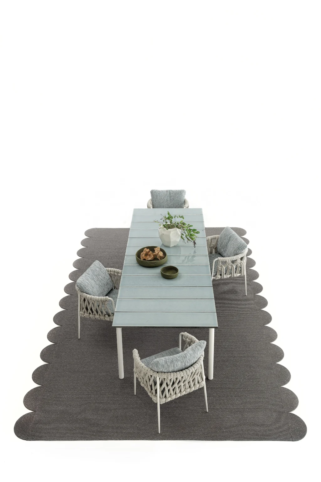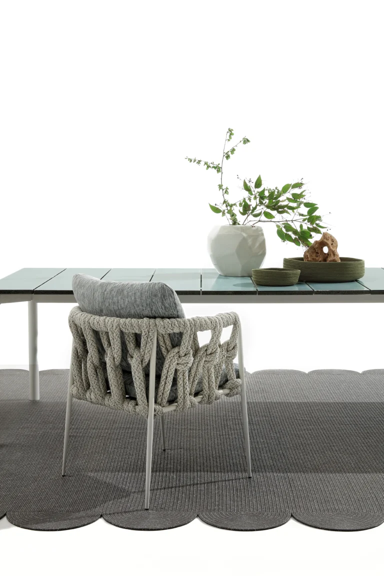 NodoItalia ropes and fabrics are UV-resistant, but prolonged exposure to intense sunlight can still affect color and strength over time. To extend their durability, we recommend using shade or protective covers when not in use. During wet weather, rain can carry dirt and pollutants that accelerate wear. Cushions and textiles should be covered or stored in dry, ventilated spaces—especially during the off-season. Always avoid plastic wraps, which can trap moisture and lead to mildew.