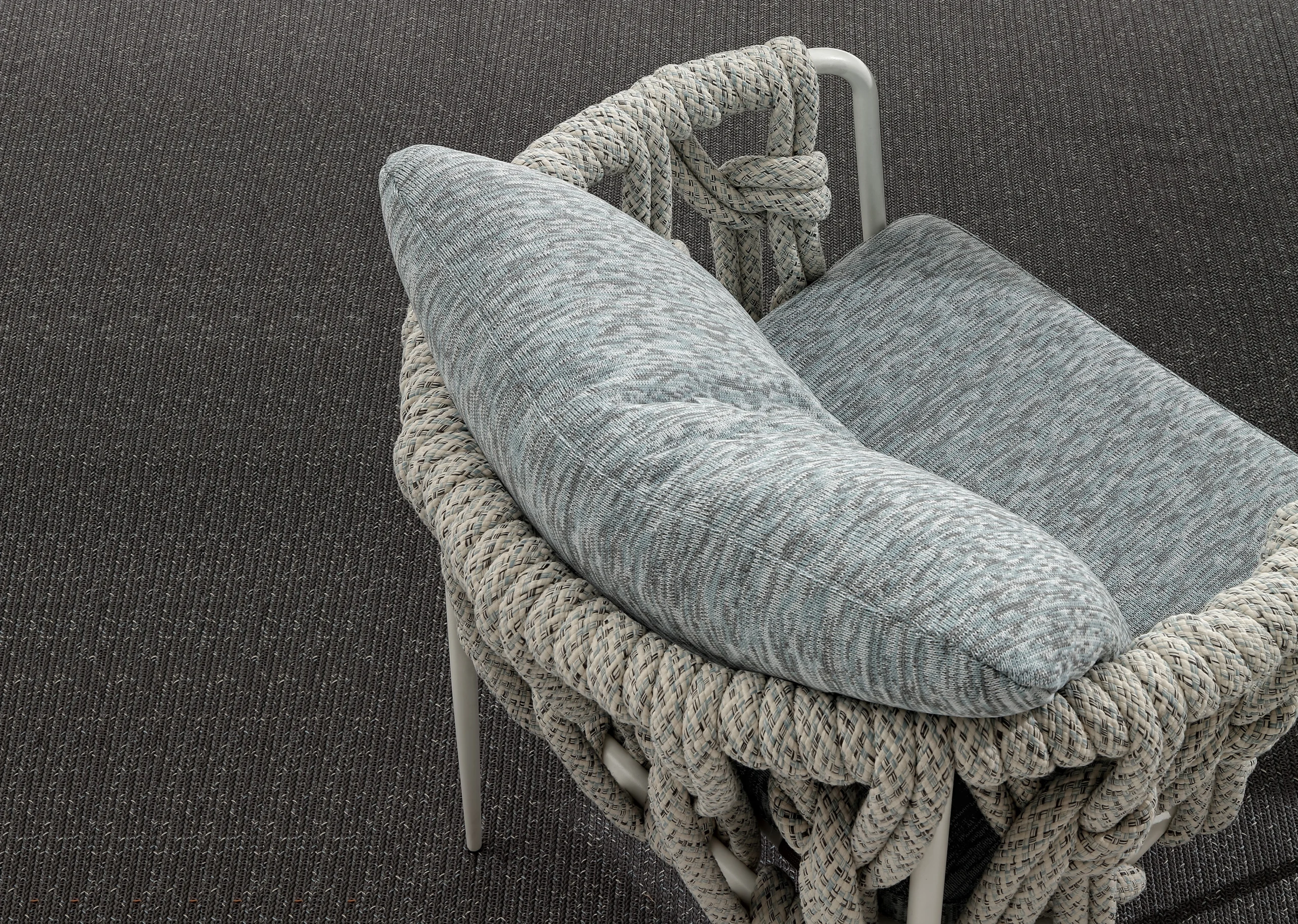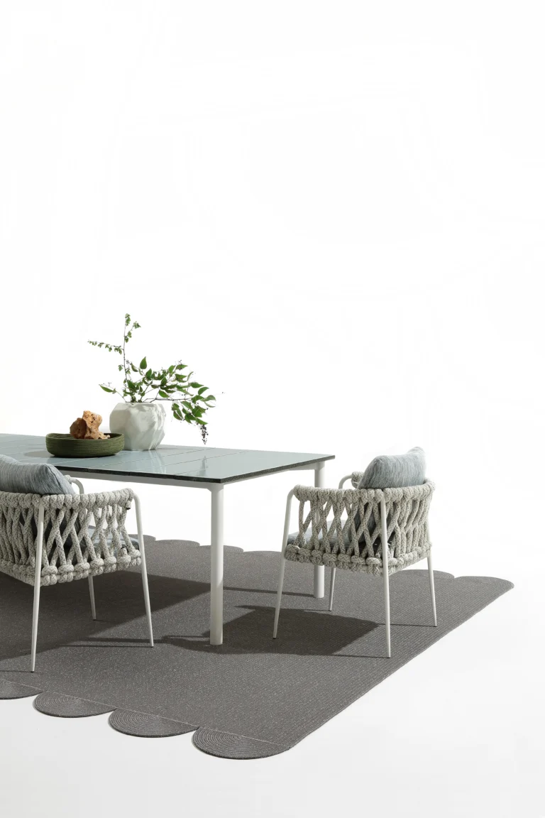 NodoItalia ropes and fabrics are UV-resistant, but prolonged exposure to intense sunlight can still affect color and strength over time. To extend their durability, we recommend using shade or protective covers when not in use. During wet weather, rain can carry dirt and pollutants that accelerate wear. Cushions and textiles should be covered or stored in dry, ventilated spaces—especially during the off-season. Always avoid plastic wraps, which can trap moisture and lead to mildew.
