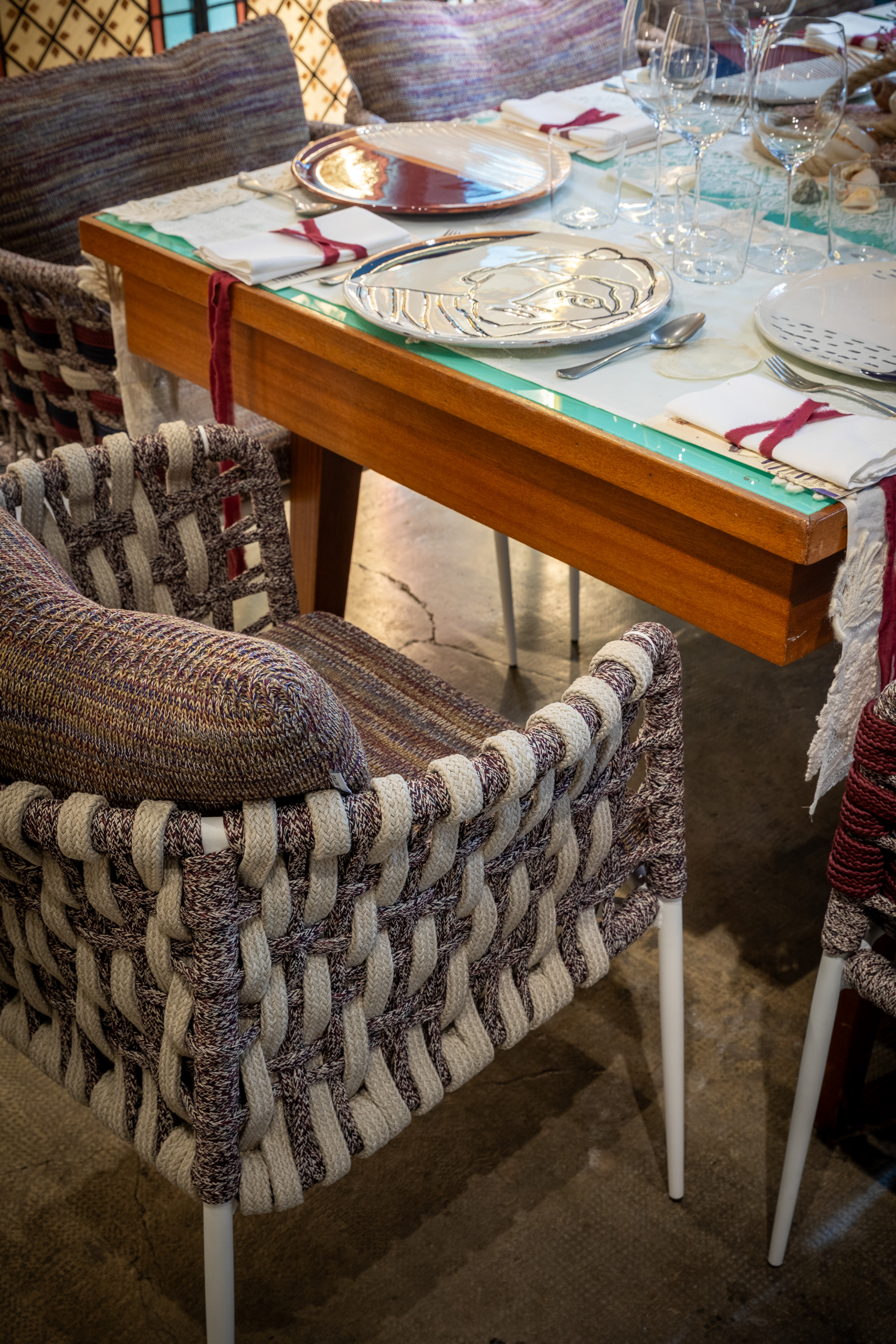 NodoItalia ropes and fabrics are UV-resistant, but prolonged exposure to intense sunlight can still affect color and strength over time. To extend their durability, we recommend using shade or protective covers when not in use. During wet weather, rain can carry dirt and pollutants that accelerate wear. Cushions and textiles should be covered or stored in dry, ventilated spaces—especially during the off-season. Always avoid plastic wraps, which can trap moisture and lead to mildew.