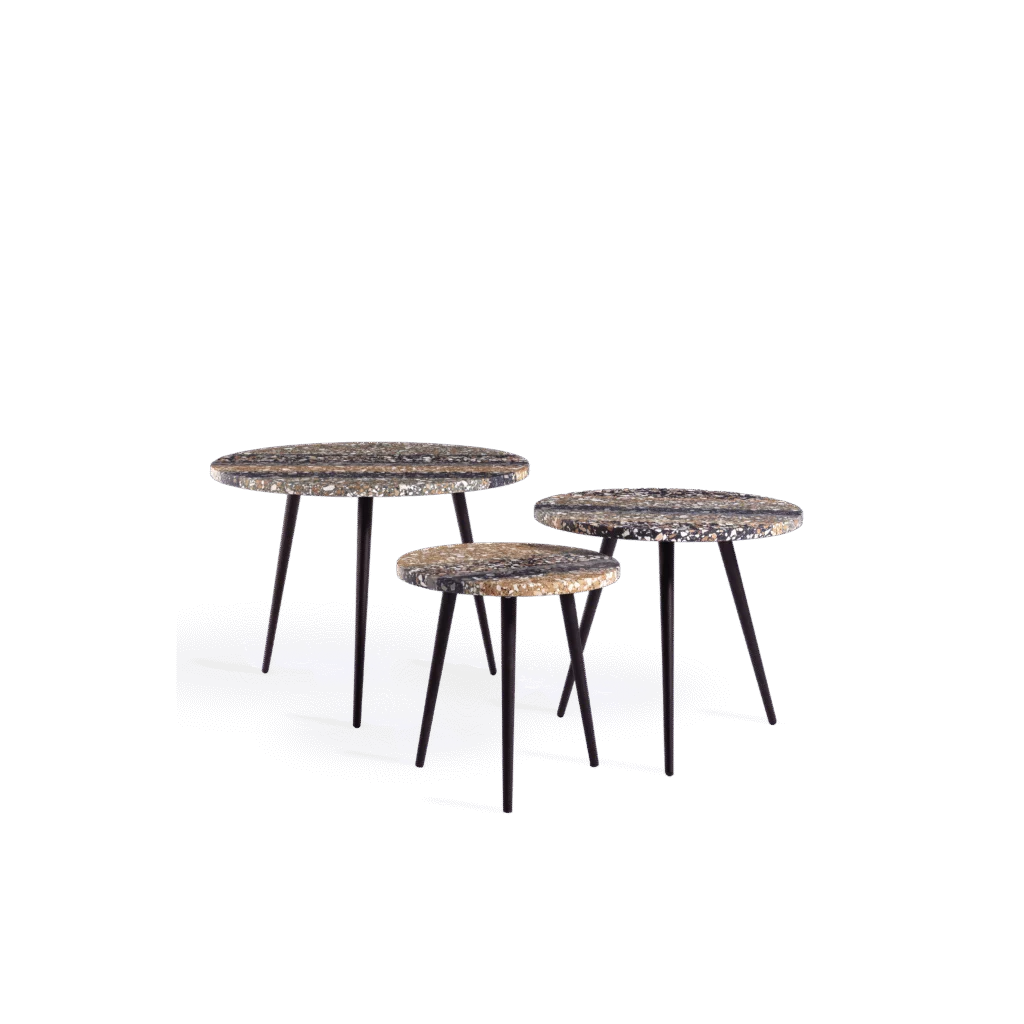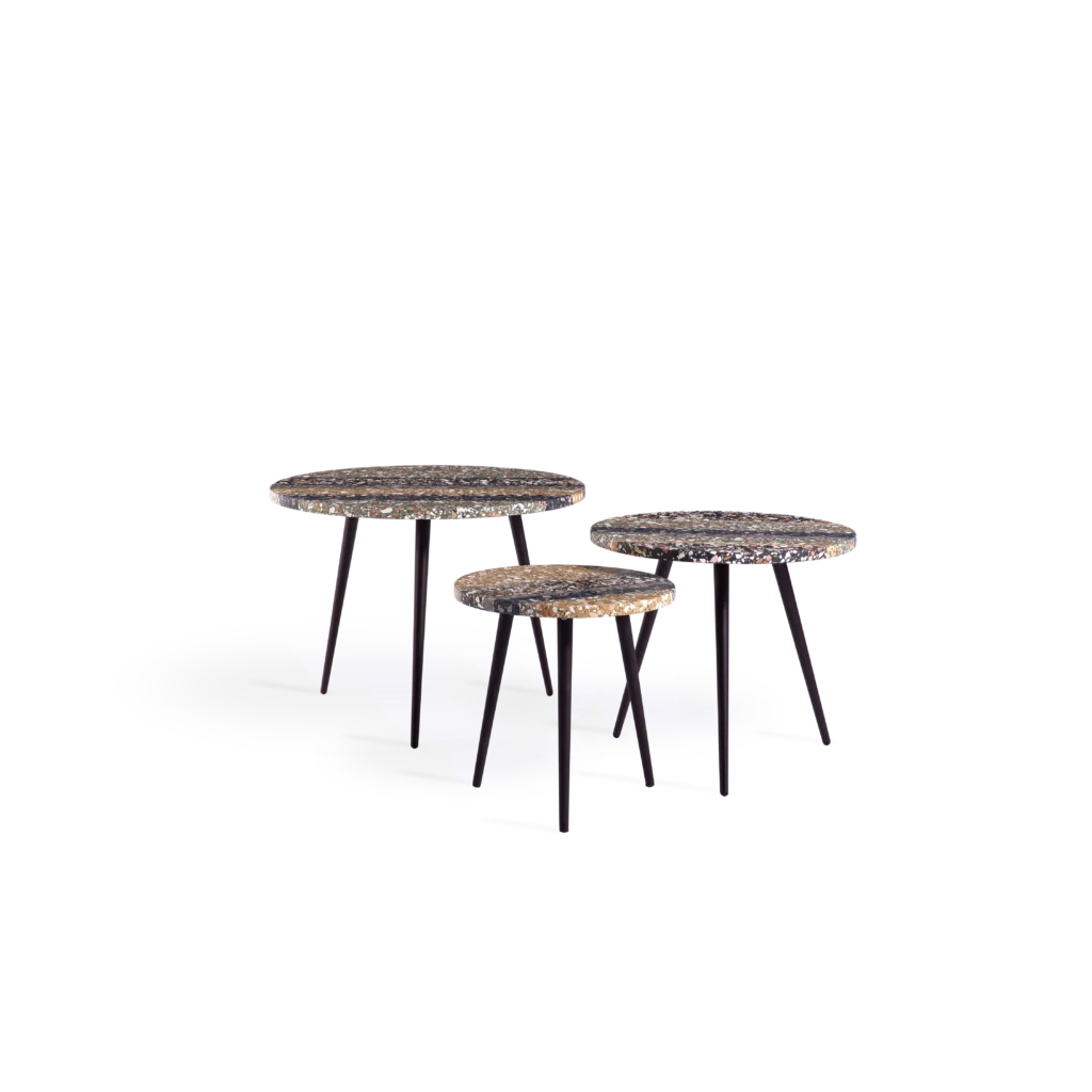 Terrazzo is both durable and decorative. Use coasters, placemats, or trivets for hot items, and avoid dropping heavy objects to prevent chips. For outdoor use, shield the table with a breathable cover (sold separately) when not in use to protect from harsh weather. Avoid plastic wraps and abrasive or acidic cleaners to preserve the surface.