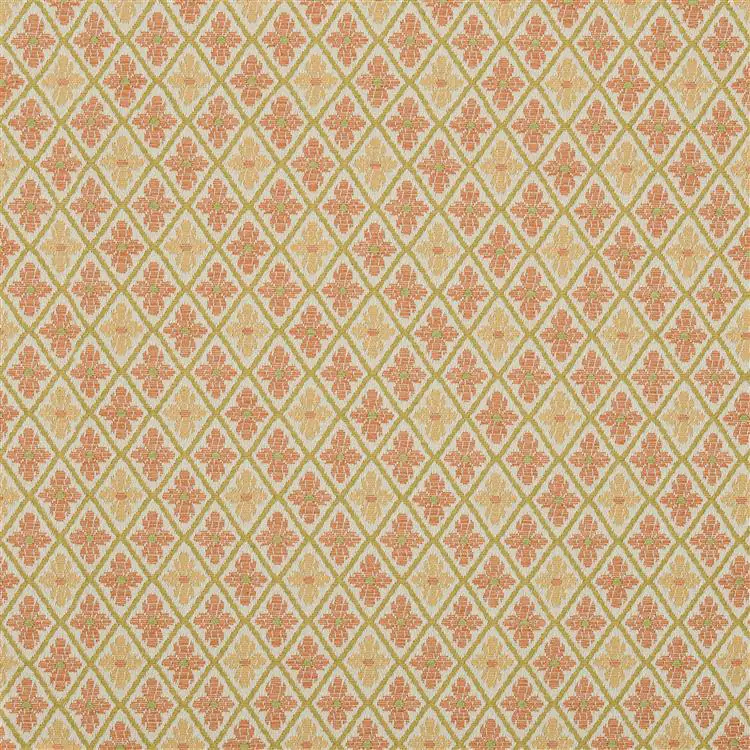 Jacquard fabric decorated with a regular floral motif inscribed in a lattice of small diamonds. Due to the density of the pattern, it is suitable for small forms: pouffes, stools, backrests and chair seats. The fabric is recommended for upholstery applications: antique furniture restoration, and replica and stylised furniture production.