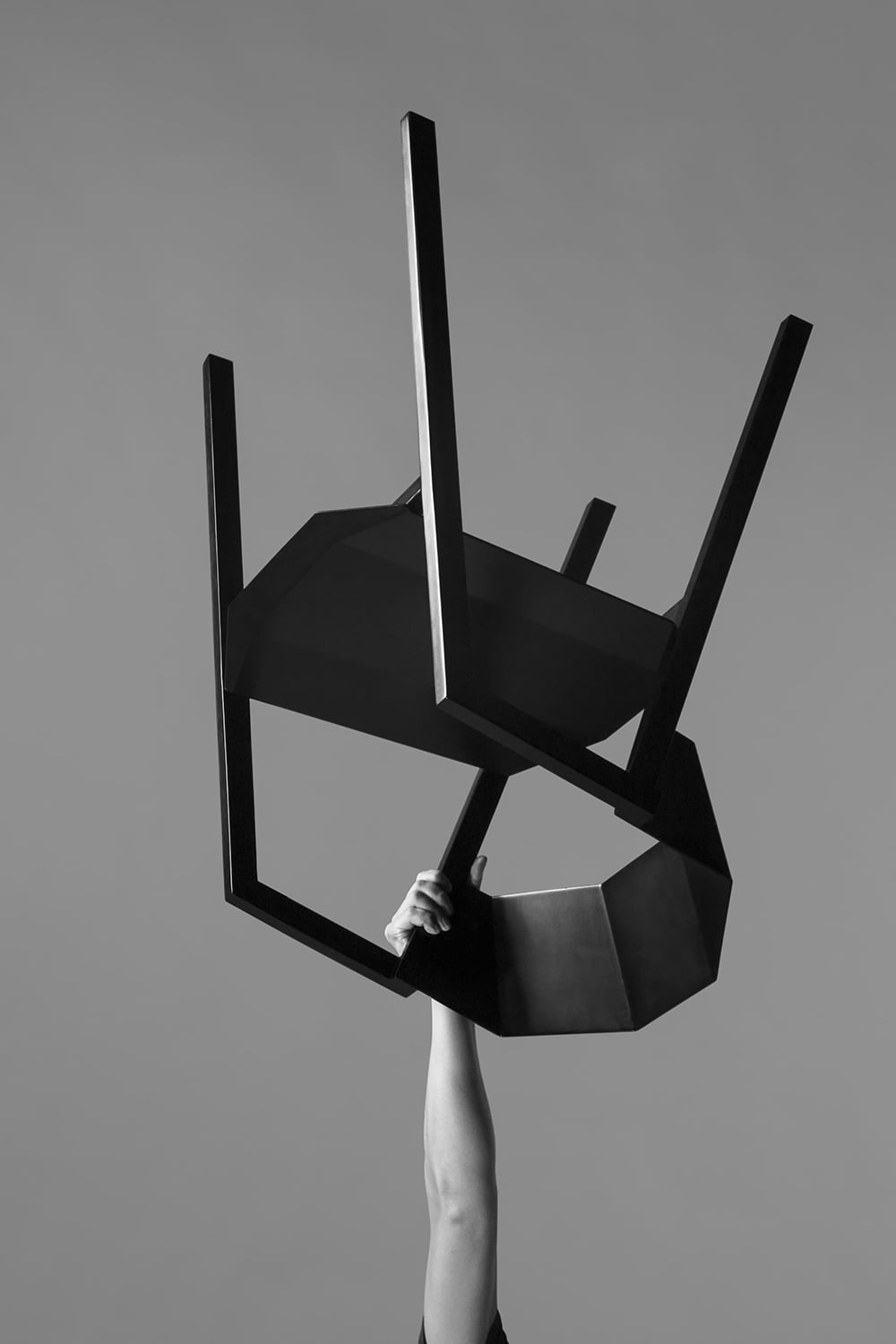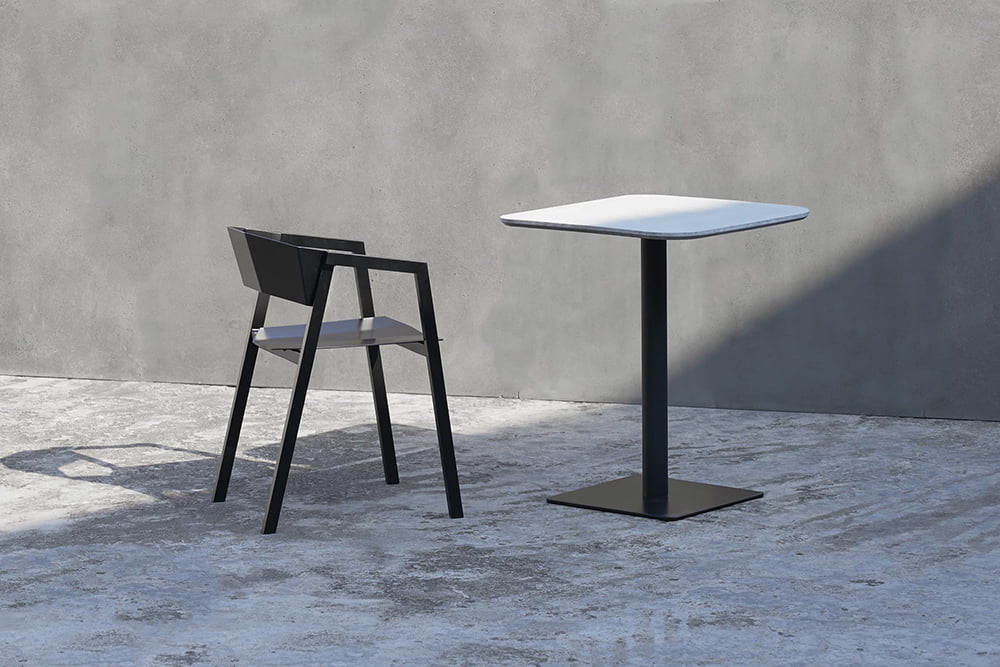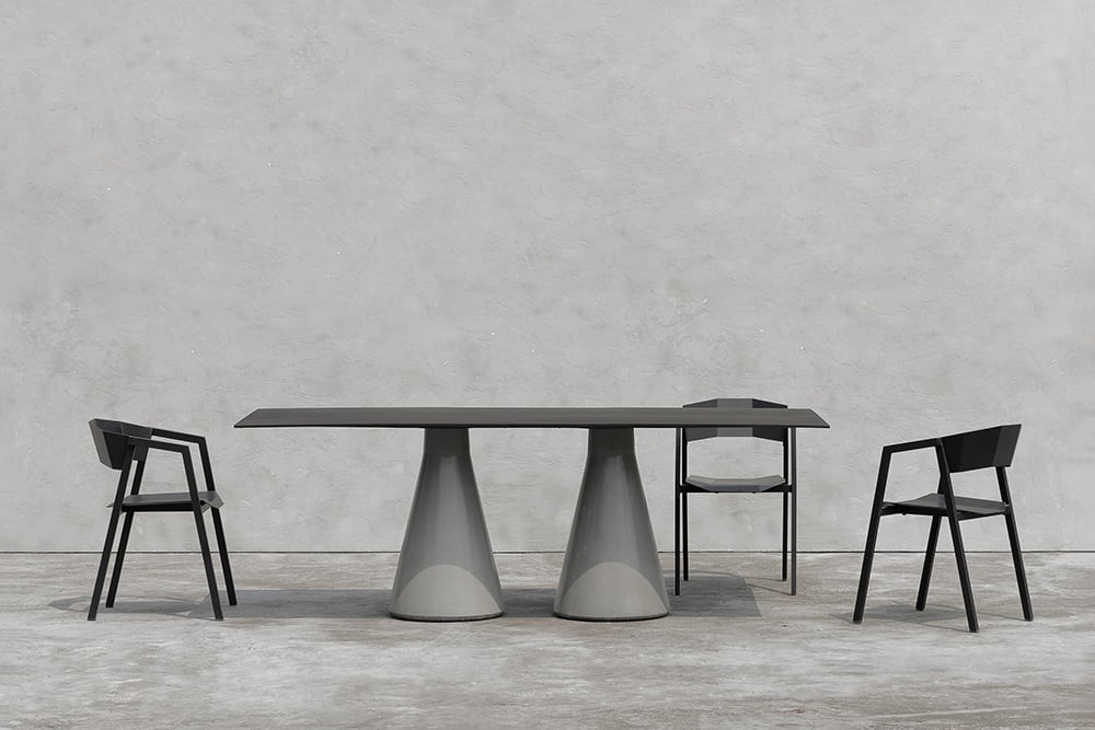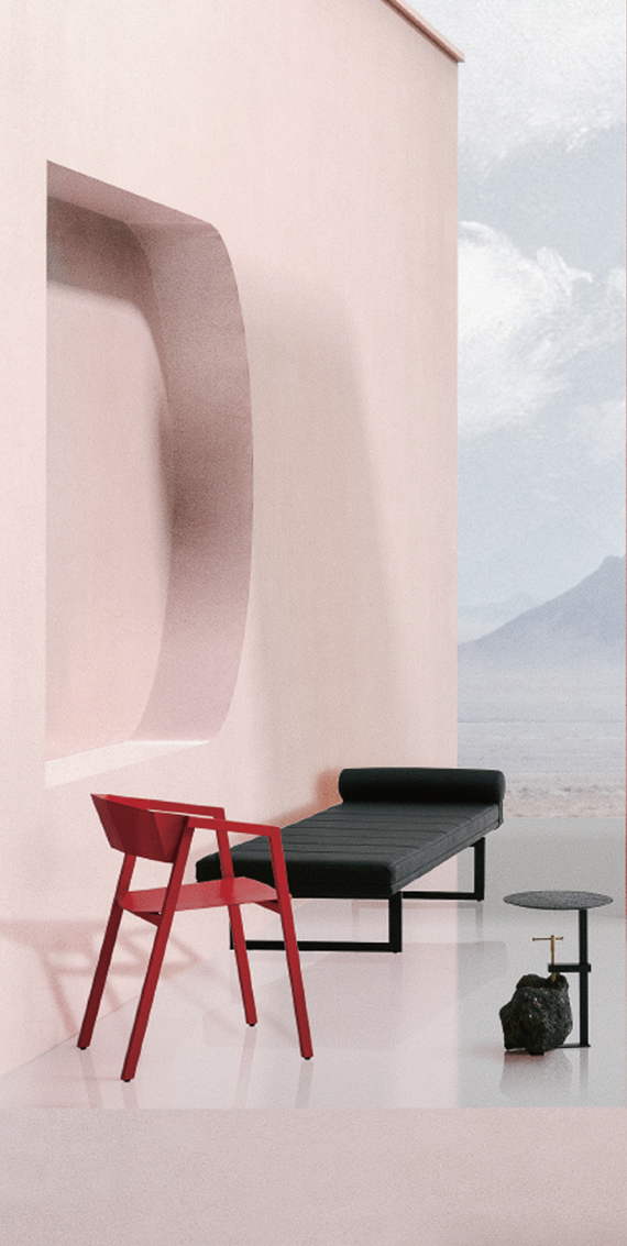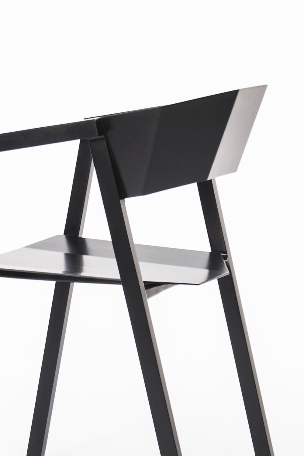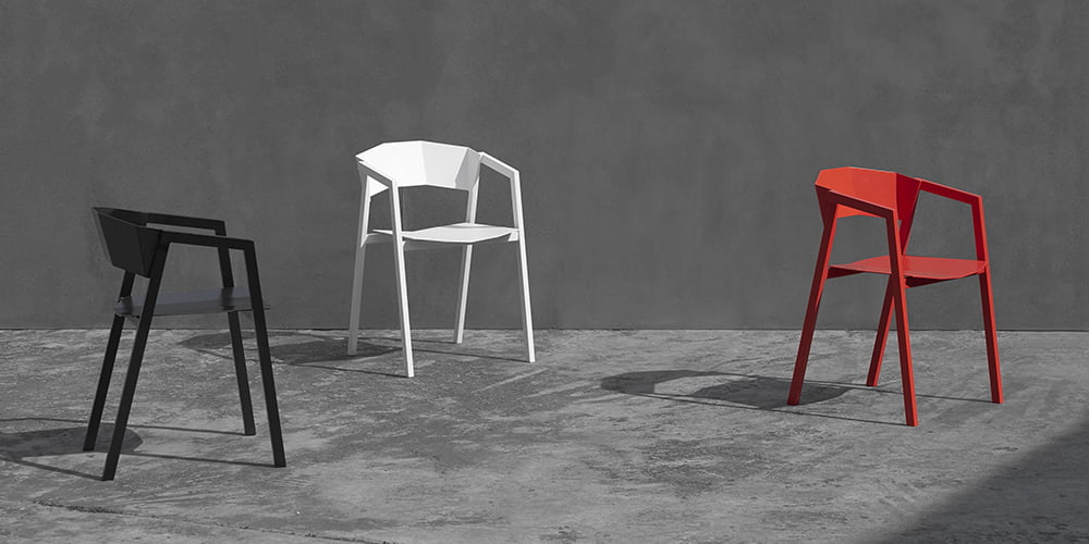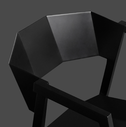 used, and sharp lines are used to create an aggressive vision and shape, which is different from the inherent gentle posture of wooden chairs. The bent metal plate