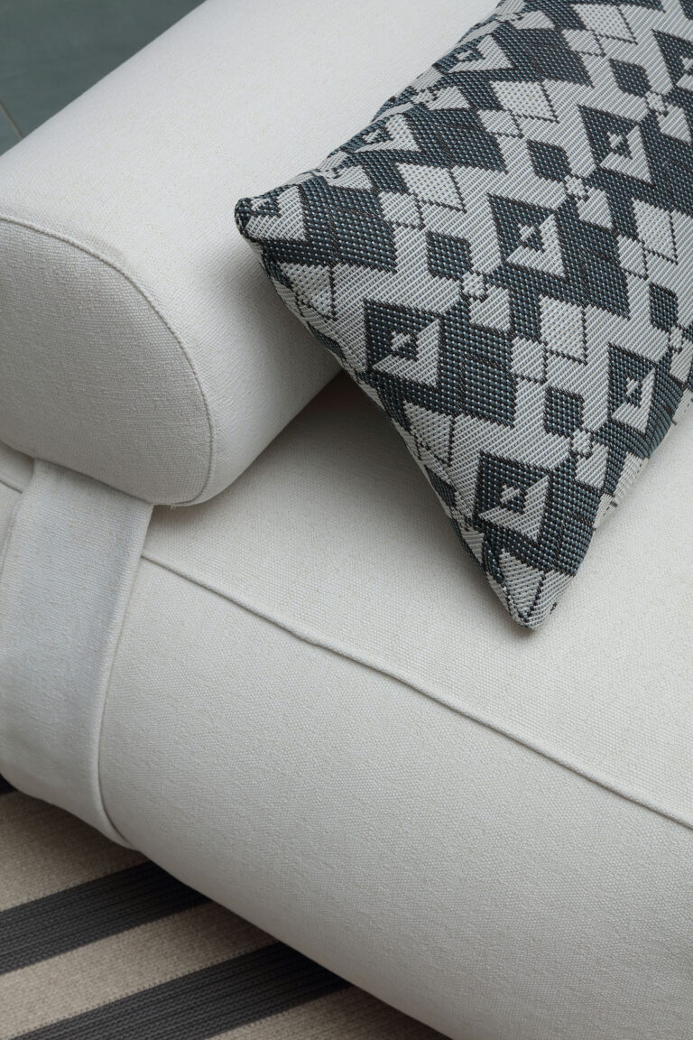 NodoItalia fabrics are fully recyclable, hypoallergenic, and resistant to bacteria and mold. They can be sanitized safely with 70% alcohol or sodium hypochlorite up to 0.5% without compromising texture or color—even after repeated cleaning. Their hydrophobic nature makes them ideal for both outdoor and indoor environments, including high-traffic or shared spaces, where hygiene and skin sensitivity are a concern.