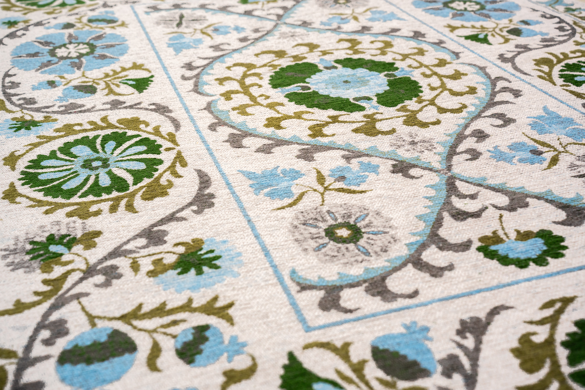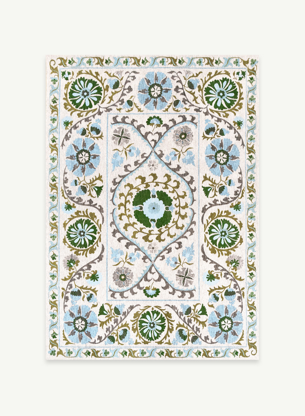 A vibrant reimagining of tradition. The Suzani collection takes inspiration from the symbolic colors and intricate designs of traditional Central Asian embroidery. Drawing from a rich tapestry of ancient motifs, our designers have carefully woven together elements from various classic Suzani patterns, creating a unique, contemporary interpretation. Each rug is infused with the cultural significance of its symbols—circles for eternity, pomegranates for fertility, and geometric shapes for protection—combined in bold, harmonious designs. With a palette that reflects the rich hues of tradition, the Suzani collection brings timeless beauty and modern style into your space, offering a sophisticated blend of history and innovation.