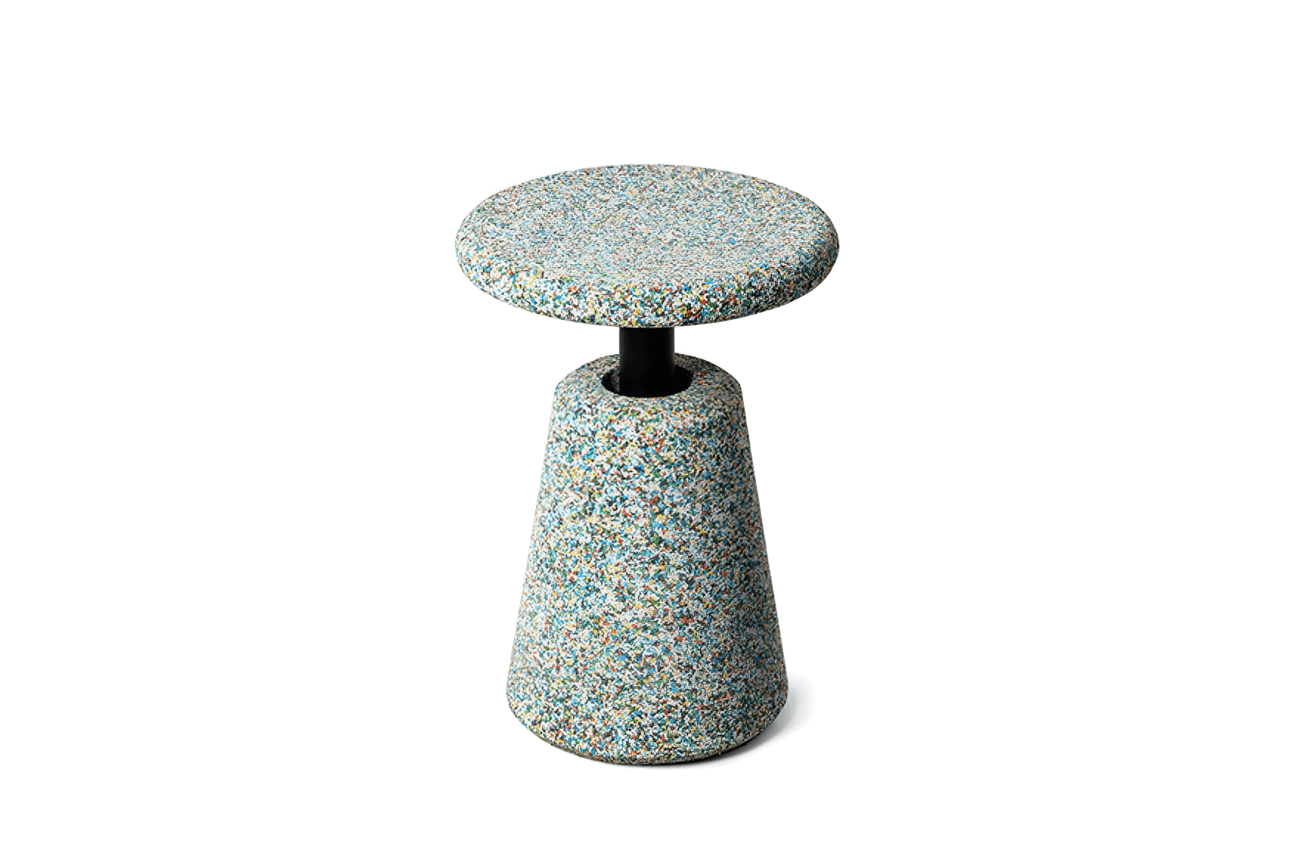 Each stool is a unique art piece of color and texture collage. The ingenious combination of rubber fragments in different colors creates a striking visual effect, showcasing the diversity of materials and the infinite possibilities of regeneration. The product’s shape and color design can be customized according to different application scenarios and customer needs, making it suitable for various spaces.